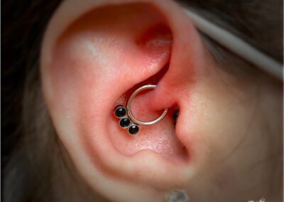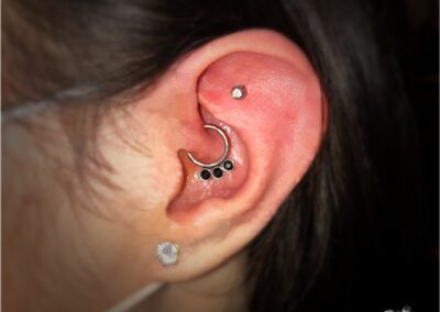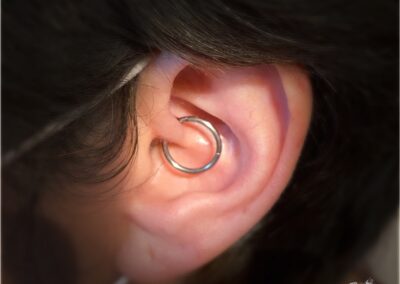 A vendég által szabadon választható TITÁNIUM (tanúsítvánnyal rendelkező, képalkotó vizsgálatokkal 100%-ban kompatibilis) testékszert, a fülkagyló megfelelő akupunktúrás pontjába helyezzük, aminél az elsődleges szempont a jótékony, szervezetre gyakorolt hatás kiváltása. A megfelelő pontot a fülben egy műszer segítségével lokalizáljuk, majd jelölést követően a kiválasztott ékszert a megjelölt pontba helyezzük. A megfelelő pont stimulálásával vendégeink visszajelzései alapján jelentős mértékben csökkennek, igen gyakran teljesen megszűnnek a kínzó tünetek. A kiváltó ok intenzitásától függően előfordul, hogy 2 piercing szükséges a kívánt hatás eléréséhez, amire az előzetes konzultáció alkalmával minden vendég számára javaslatot teszünk.